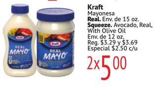 Kraft Mayonesa Real. Env. de 15 oz. Squeeze. Avocado, Real, With Olive Oil Env. de 12 oz.