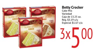 Betty Crocker Cake Mix Variedad Caja de 13.25 oz.