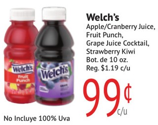 Welch's Apple/ Cranberry Juice, Fruit Punch, Grape Juice Cocktail, Strawberry Kiwi Bot. de 10 oz.