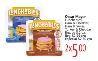 Oscar Mayer Lunchables Ham & Cheddar, Ham & Swiss, Turkey & Cheddar Env. de 3.2 oz.