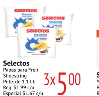 Selectos Papas para Freir Shoestring Pqte. de 1.1 Lb. Z