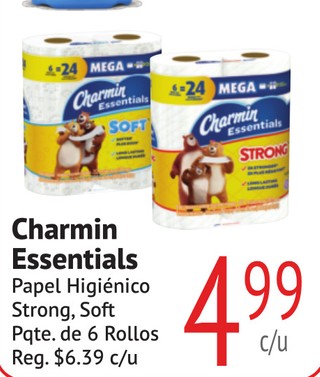 Charmin Essentials Papel Higienico Strong, Soft Pqte. de 6 Rollos