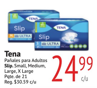 Tena Pañales para Adultos Slip. Small, Medium, Large, X Large Pqte. de 21