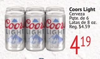 Coors Light Cerveza Pqte. de 6 Latas de 8 oz.