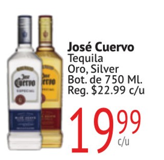 José Cuervo Tequila Oro, Silver Bot. de 750 ML.