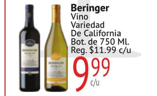 Beringer Vino Variedad De California Bot. de 750 ML.