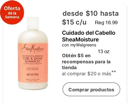 semana shea moisture coconut hibiscu curl shine shampoo $hasta $c/u cuidado cabello sheamoisture walgreens obtén recompensas tienda comprar más" productos