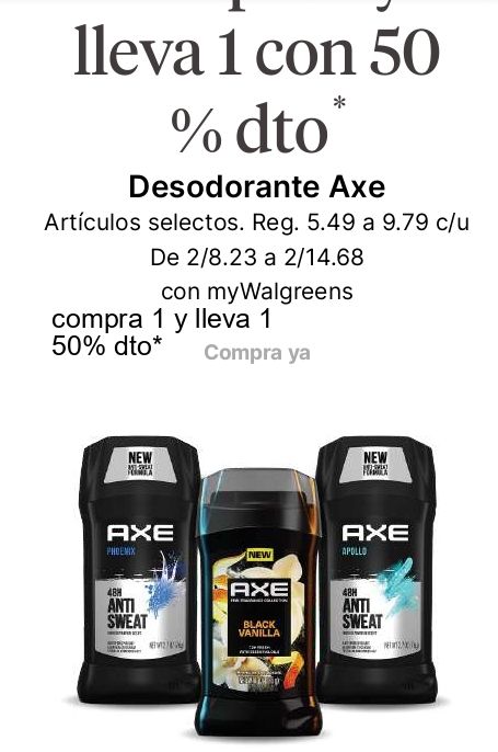 dto* desodorante artÃculos selectos reg. /con mywalgreens compra phoenix apollo anti sweat black vanilla