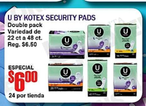 kotex security pads double pack variedad reg. especial $por tienda