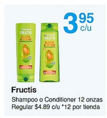 overy fructg fleek fructs slaak fructis shampoo conditioner onzas regular $c/u *por tienda