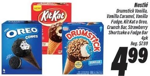 oreo cones kitkat orums mstick vanilla nestlé drumstick caramel, fudge, oreo, crunch bar, strawberry shortcake fudge