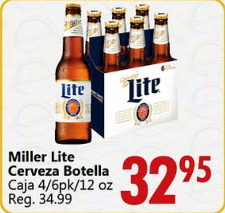lite miller cerveza botella caja /pk/
