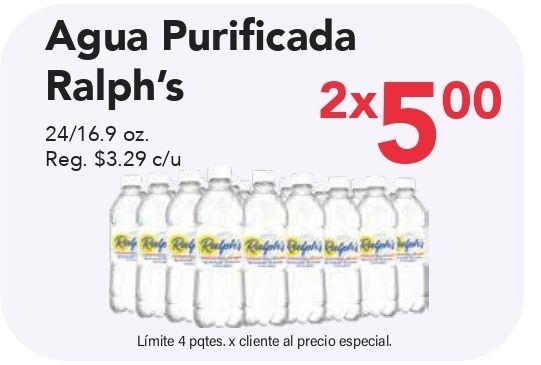agua purificada ralph's reg. $c/u xlímite pqtes. cliente precio especial.