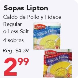 sopas lipton caldo pollo fideos regular less salt sobres $lipton sopa fillers sapa fidery
