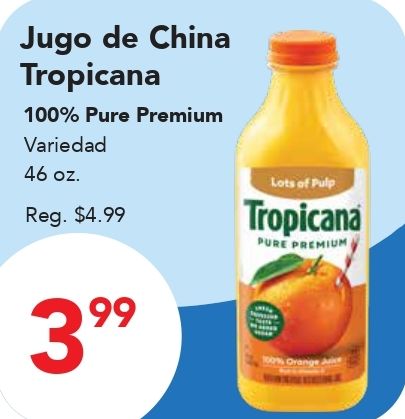 jugo china tropicana pure premium variedad reg. $lots pulp orange