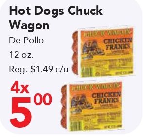 dogs chuck wagon pollo reg. $c/u chicken franks