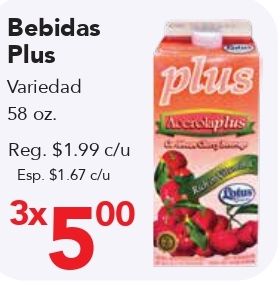 bebidas plus variedad reg. $c/u esp. xplus averslaplus richt