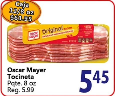 caja $oscar original bacon mayer naturally hardwood smoked eviz oscar tocineta pqte reg.