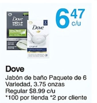 dove jabón baño paquete varledad onzas regular $c/u *por tienda cliente