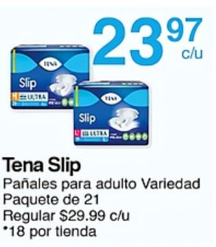 slip tena paƱales adulto variedad paquete regular $c/u *por tienda