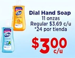 dial hand soap onzas regular $c/u *por tienda