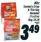 ritz toasted chips crisp thin variedad $*svt