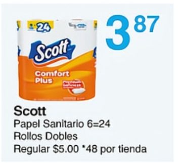 scott comfort plus papel sanitario =rollos dobles regular $*por tienda