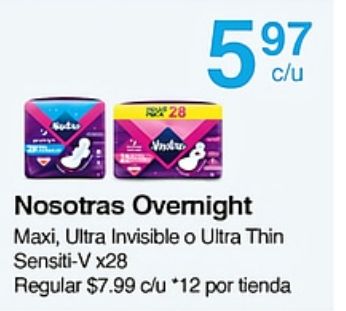 vndu overnight maxi ultra invisible thin sensiti-v xregular $c/u *por tienda
