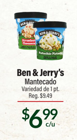 Ben y jerry´s mantecado variedad de 1 qt.