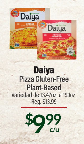 Daiya pizza gluten-free plant-based variedad de 13.47 oz. a 19.1 oz.