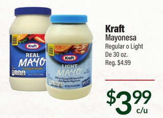 Kraft mayonesa regular o light de 30 oz.