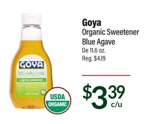 Goya organic sweetener blue agave de 11.6 oz.