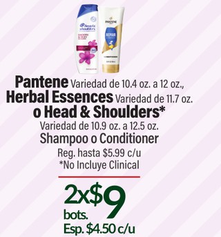 Pantene Variedad de 10.4 oz. a 12 oz., Herbal Essences Variedad de 11.7 oz. o Head & Shoulders* Variedad de 10.9 oz. a 12.5 oz. Shampoo o Conditioner