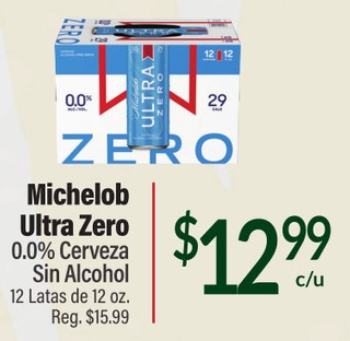 Michelob Ultra Zero 0.0% Cerveza Sin Alcohol 12 Latas de 12 oz.