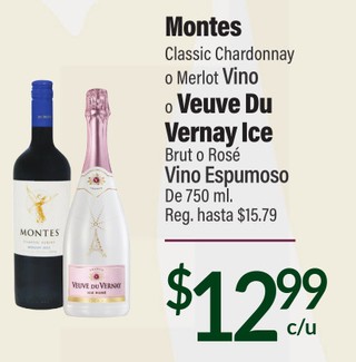 Montes Classic Chardonnay o Merlot Vino Veuve Du Vernay Ice Brut o Rosé Vino Espumoso De 750 ml.
