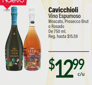 Cavicchioli Vino Espumoso Moscato, Prosecco Brut o Rosado De 750 ml.