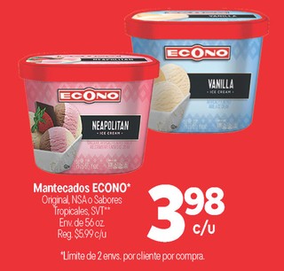 Mantecados Econo original , NSA o sabores tropicales, SVT* env. de 56 oz.