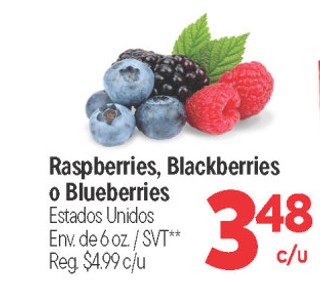 Raspberries, blackberries o blueberries Estados Unidos env. de 6 oz. SVT*
