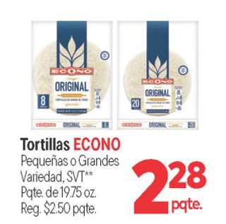 Tortillas econo pequeñas o grandes variedad, svt** pqte. de 19.75 oz.