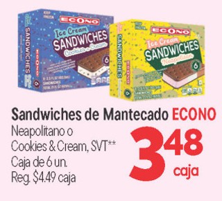 Sandwiches de mantecado econo neapolitano o cookies y cream, svt** caja de 6 un.