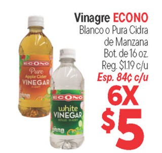 Vinagre ECONO Blanco o Pura Cidra de Manzana Bot. de 16 oz.