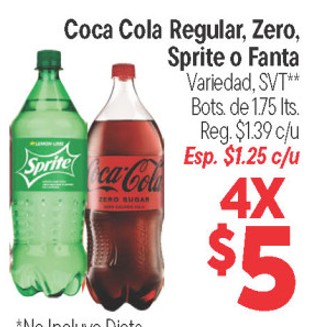 Coca cola regular, zero, sprite o fanta variedad, svt** bots. de 1.75 lts.