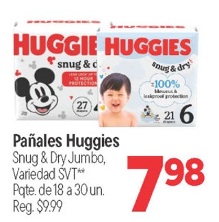 Pañales Huggies Snug & Dry Jumbo, Variedad SVT** Pqte. de 18 a 30 un.