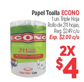Papel Toalla ECONO 1 un. Triple Hoja Rollo de 211 hojas,