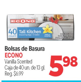 Bolsas de basura econo vanilla scented caja de 40 un. de 13 gl.
