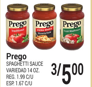 Prego spaghetti sauce variedad 14 oz.
