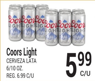 Coors light cerveza lata 6/10 oz.
