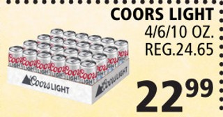 Coors light 4/6/10 oz.