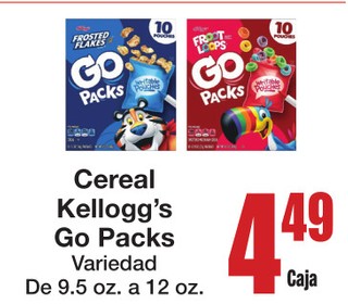 Cereal Kellogg's Go Packs Variedad De 9.5 oz. a 12 oz.