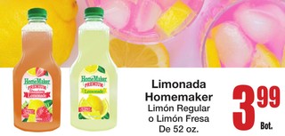 Limonada Homemaker Limon Regular o Limon Fresa De 52 oz.